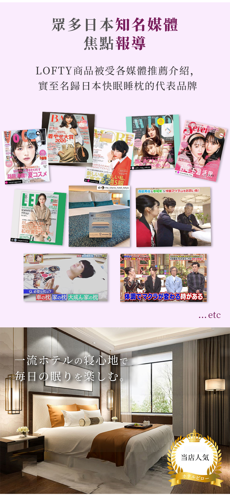 LOFTY枕工房的獨特5部結構,減少睡眠時枕頭容易變形,確保承托好頭及頸部。