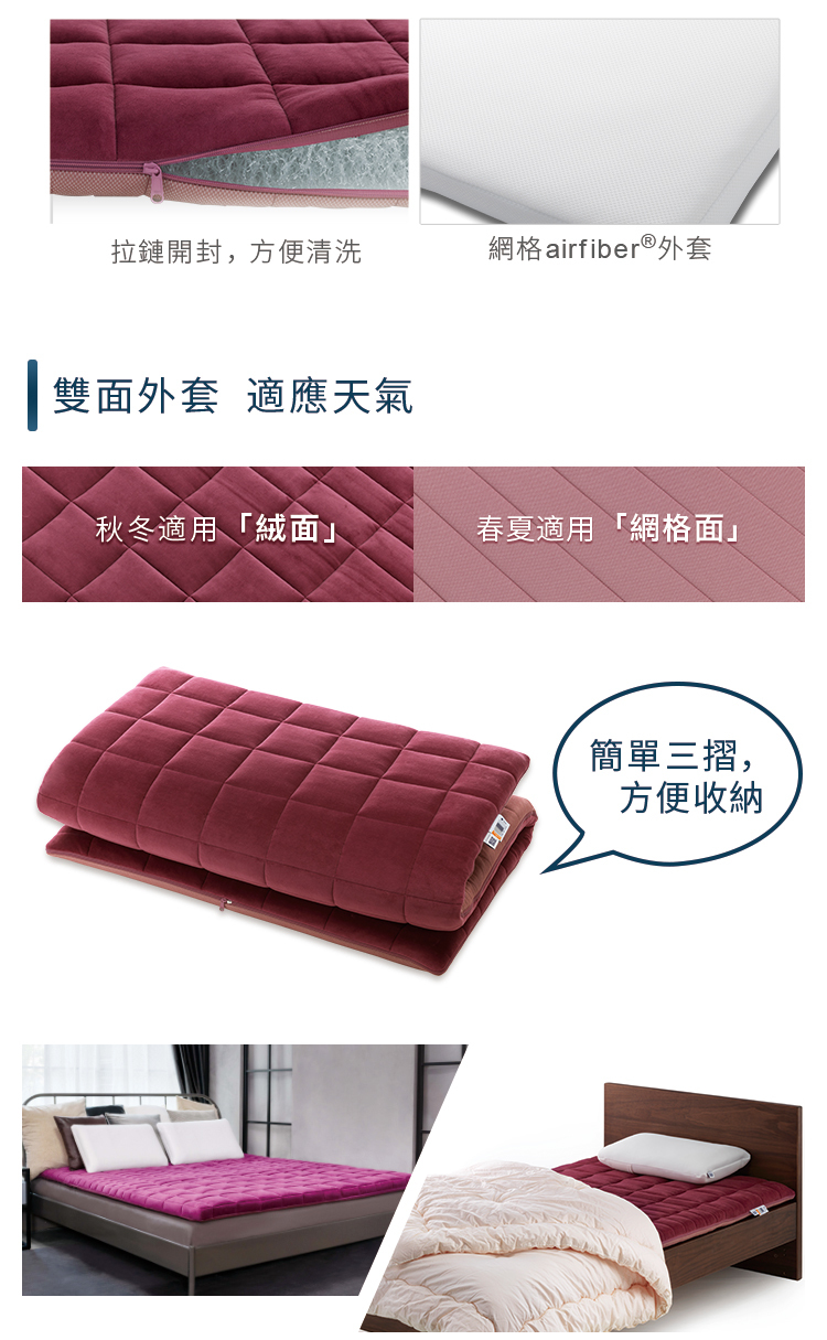 放上現有的床褥上升級寢具,或單獨使用即可。