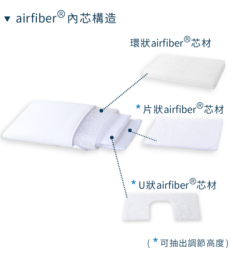 2塊airfiber芯材可以自由加減,調量出適合自己有舒適睡眠的枕頭高度。